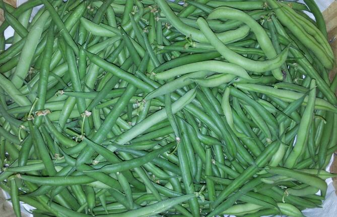 Ruim 2 kilo sperzieboontjes kwamen er van mijn paar planten die ik heb staan. Deze hebben we afgelopen woensdag schoongemaakt. 's Avonds hebben we er een heerlijke maaltijd aan gehad en de rest is rauw en gehalveerd ingevroren. Over het invriezen van sperziebonen hoor ik niet altijd positieve berichten. Ze zouden slap worden. Voor ons is dat niet zo'n probleem. Mochten ze echt niet te eten zijn kunnen we ze altijd nog smoren in de wok en Sajoer boontjes ervan maken.